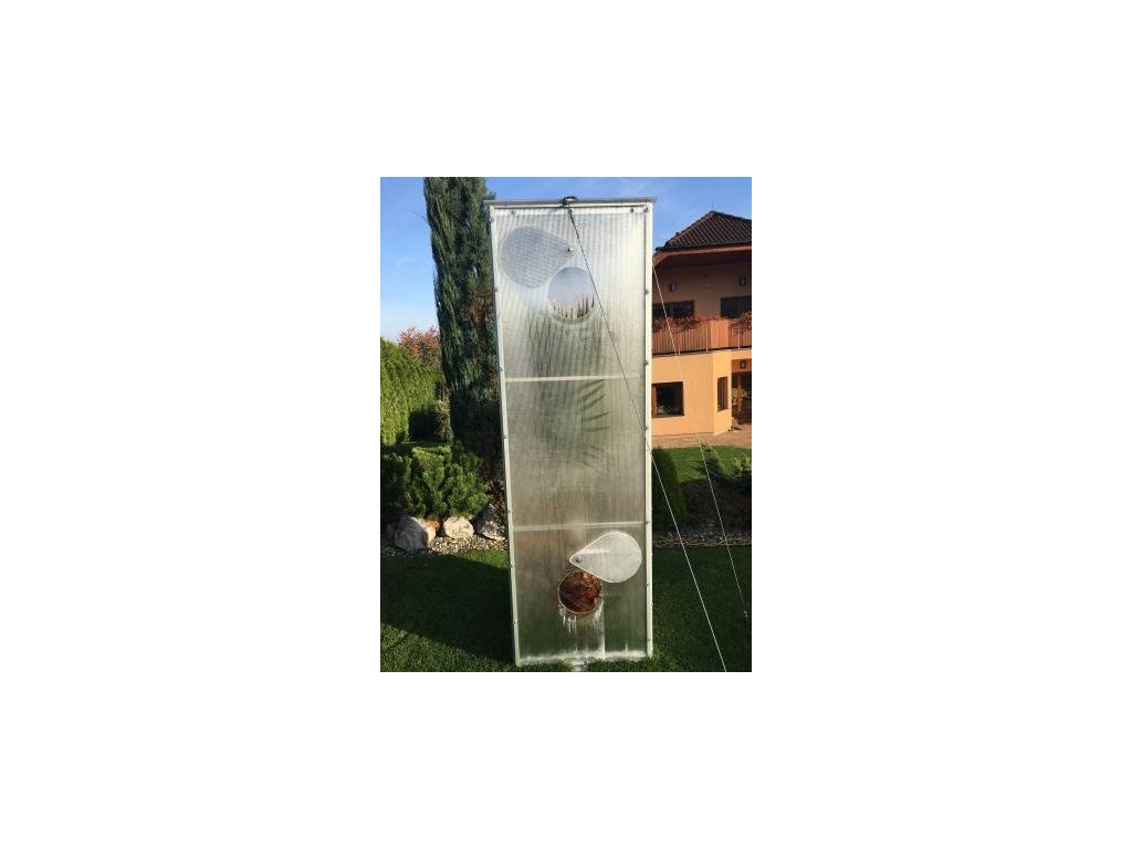 Naše skleníky jsou odolné větru, dešťovým i sněhovým srážkám i mrazům. Mají dlouhou životnost a mají vynikající izolační schopnosti díky dvoustěnnému polykarbonátu. Když svítí sluníčko přes den, tak i ve skleníku je teplo, a naopak když je venku - 20°C, ve skleníku může být i +20°C i více. To Vám všem ušetří energii vytápění. Díly, jsou velmi lehké a snadno se montují. Pouze se sešroubují do připravených a předvrtaných otvorů. S topným tělesem a termostatem velmi spolehlivě ochrání i méně odolné rostliny před tuhým mrazem.