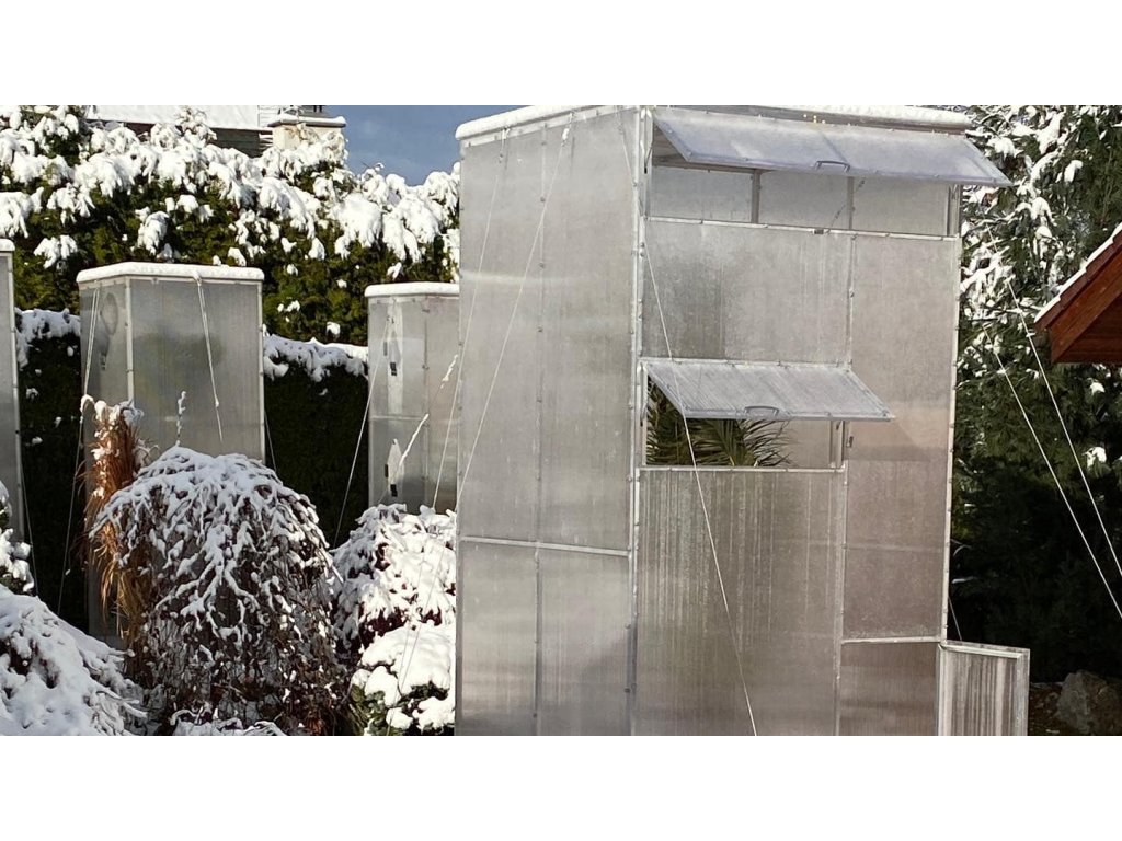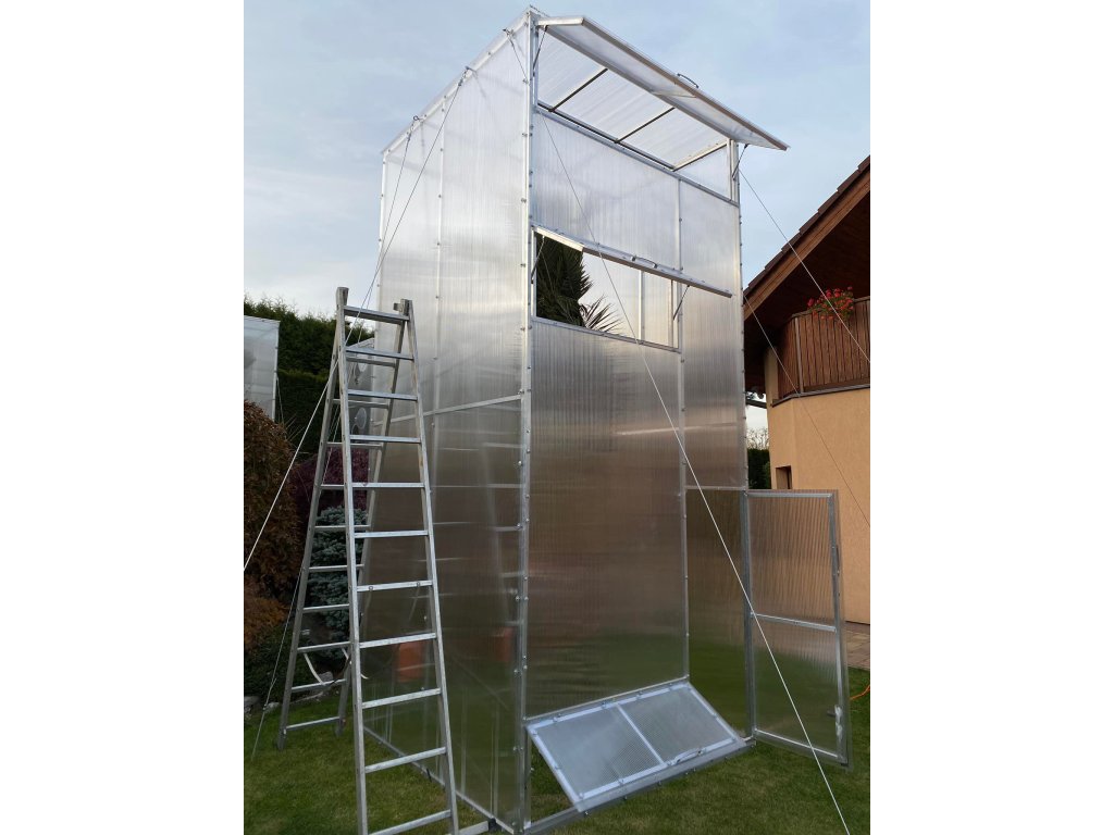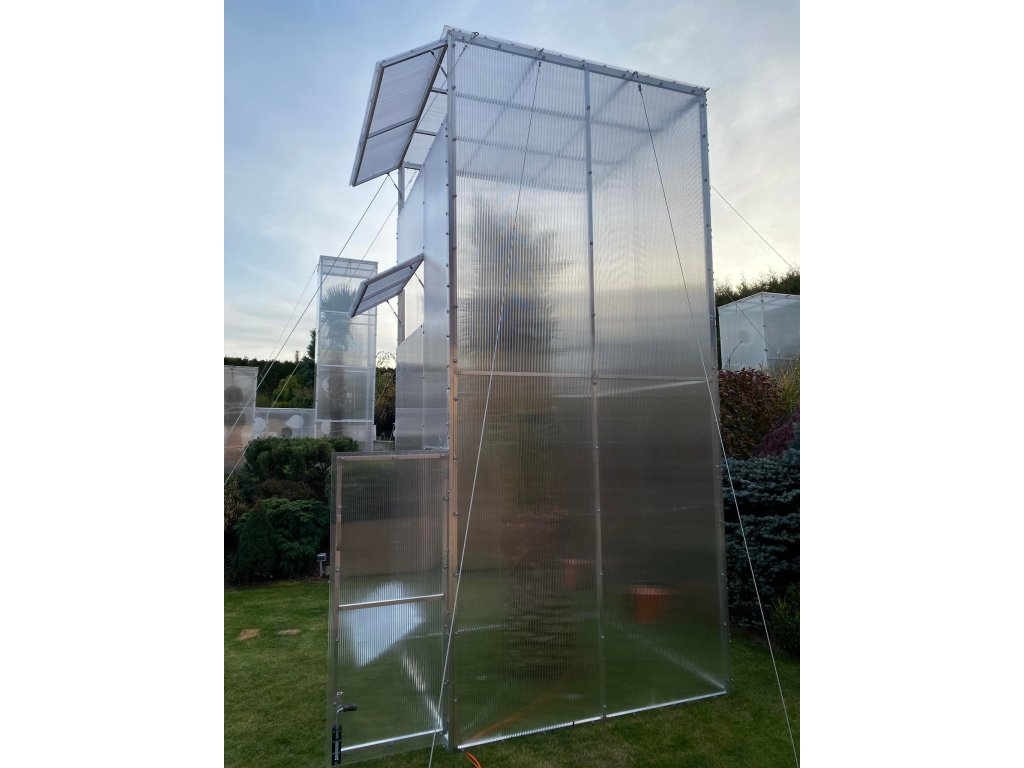 Naše skleníky jsou odolné větru, dešťovým i sněhovým srážkám i mrazům. Mají dlouhou životnost a mají vynikající izolační schopnosti díky dvoustěnnému polykarbonátu. Když svítí sluníčko přes den, tak i ve skleníku je teplo, a naopak když je venku - 20°C, ve skleníku může být i +20°C i více. To Vám všem ušetří energii vytápění. Díly, jsou velmi lehké a snadno se montují. Pouze se sešroubují do připravených a předvrtaných otvorů. S topítkem a termostatem velmi spolehlivě ochrání i méně odolné rostliny před tuhým mrazem.